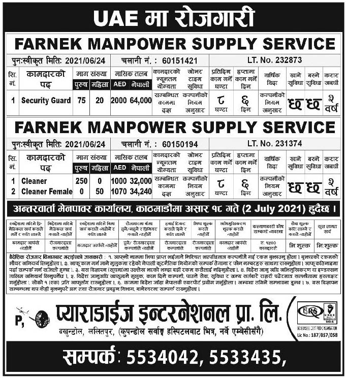 Security Guard | 75 | 20 | 64,000 |