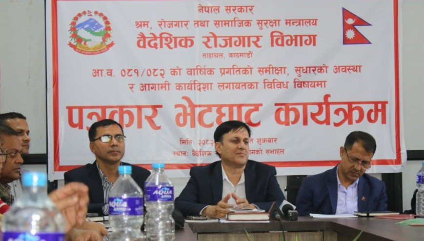 काठमाडौँ । वैदेशिक रोजगार विभागले आर्थिक बर्ष ०८१/०८२ को वार्षिक प्रगतिको समीक्षा, सुधारको अवस्था र आगामी कार्यदिशालगायत सार्वजनिक गरेको छ । शुक्रबार काठमाडौँ पत्रकार सम्मेलनको आयोजना गर्दै विभागले उक्त विवरण सार्वजनिक गरेको हो ।