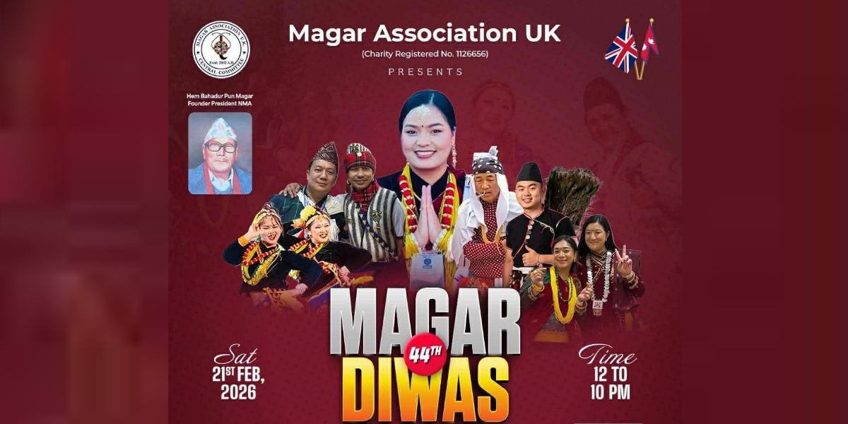 लन्डन । बेलायतमा भव्य रूपमा ४४औँ मगर दिवस मनाइने भएको छ । मगर एसोसिएसन यूकेले आगामी २१ फेब्रुअरी, २०२६ शनिबारका दिन एल्डरसटस्थित एम्पायर हलमा दिवस मनाउने तयारी गरेको हो ।